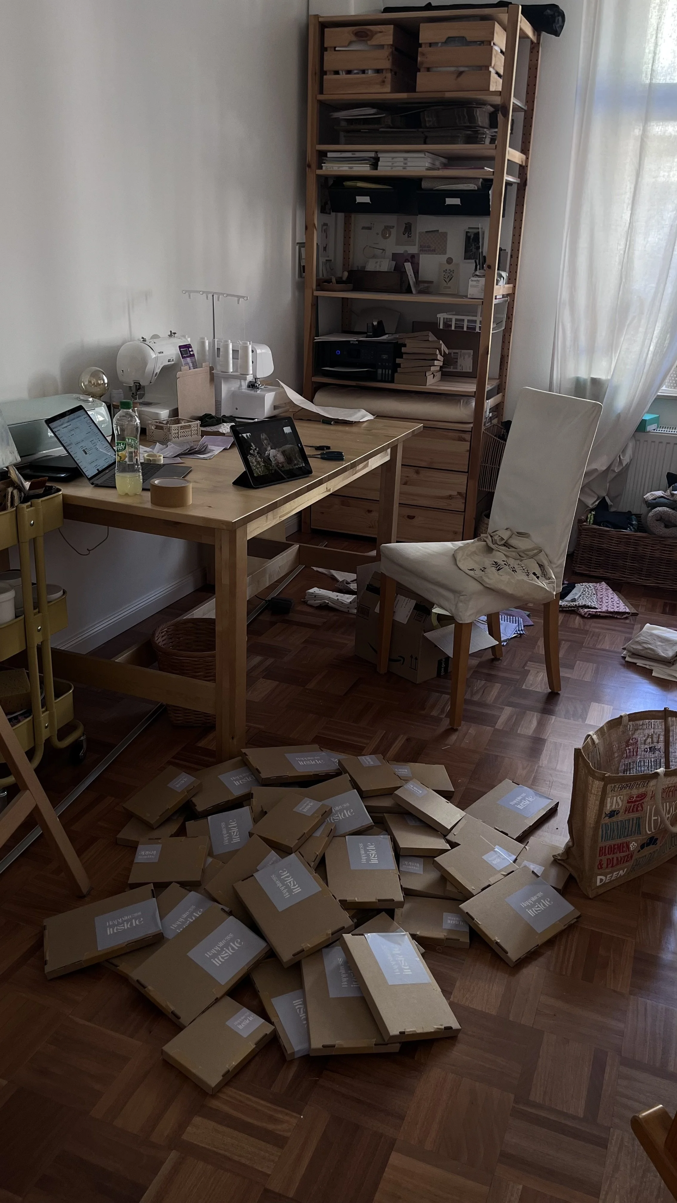 Noch im Krankenhaus entstand der Plan mir selbst Tubie Sets für meine Ernährungssonde zu nähen. Zuhause angekommen feierte ich Weihnachten zwischen Stoffen, Prototypen und der Vorfreude meine Werke mit Menschen zu teilen. Mein Etsy-Shop ging mit handgenähten Hilfsmitteln für Ernährungssonden, Blasenkatheter und intravenöse Katheter an den Start. Was als persönliche Lösung begann, wurde schnell zu einem kreativen Business, mit welchem ich inzwischen über 650 Kund:innen in ganz Europa erreichen durfte.